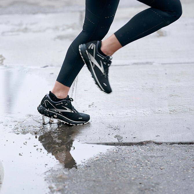Laufen kann so einfach sein. Vielleicht bist du schon mit der richtigen Grundausstattung wie Sneakers, Top und Shorts oder Leggings für deine Bedürfnisse eingedeckt. Aber wie sieht es mit wetterfester Ausrüstung aus? Durch Regen oder Schnee zu laufen kann manchmal ganz schön anstrengend sein, muss es aber nicht. Wenn du deine Ausrüstung mit ein paar zusätzlichen Teilen vervollständigst, fällt es dir bestimmt leichter, vor die Tür zu gehen – und hebt deine Laune beim Laufen. Die folgenden Dinge solltest du beim Laufen bei Regenwetter beachten.
