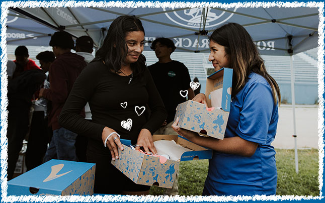 Grace Gonzales et Andrea Guerra, membres de l’équipe de coureurs et coureuses de distance toute Latinx Angel City Elite de Brooks, ont eu l’occasion de remettre la subvention à l’équipe d’athlétisme du LA High. Les coureurs et coureuses professionnels ont adoré surprendre l’équipe.